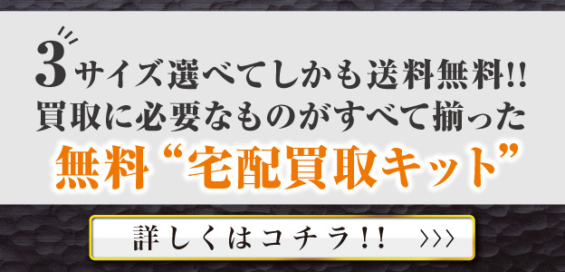 着払いまたは送料無料で便利な『宅配買取キット』をぜひご利用いただき、当店までお品物を送りください。